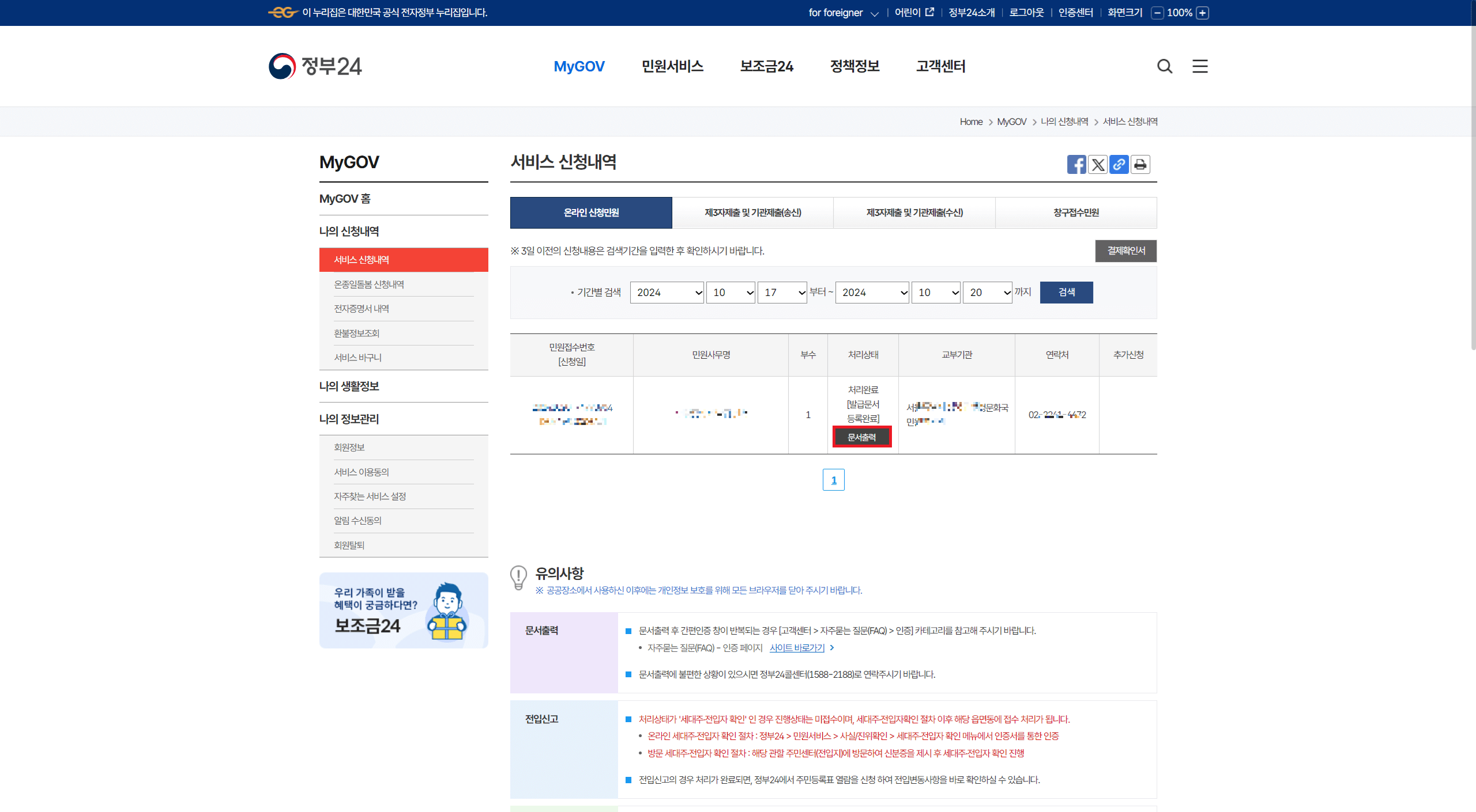 1. 정부24 홈페이지에 접속 후 회원가입 및 로그인합니다.